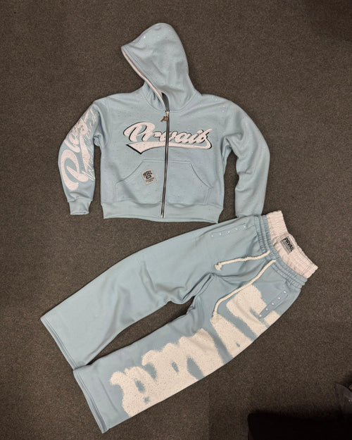PRVAIL ZIP JACKET AND DOUBLE WAISTED PANTS SET "BLACK"